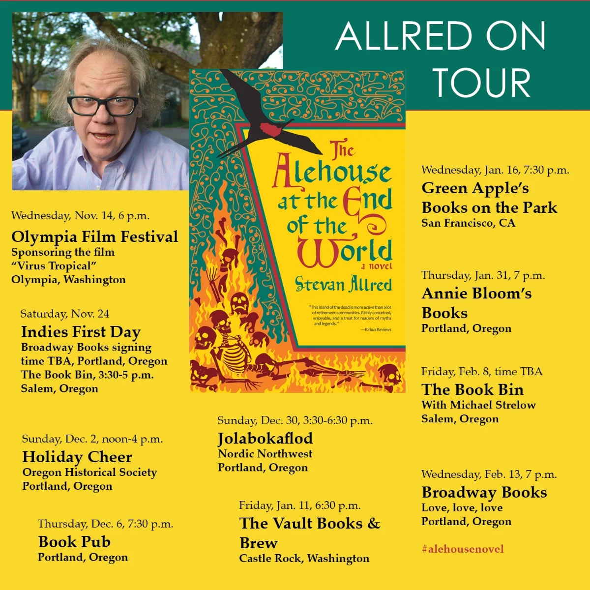 “The Alehouse at the End of the World will swallow you whole. You’ll land on the Isle of the Dead and walk with the fisherman who longs for his beloved. The Crow will eschew you with his solipsistic drama, and the Goddess will seduce you as part of her plan. Stevan Allred’s luscious language drives the novel, and his playful remix of lyrics and religious systems satisfies deep questions about the afterlife and the soul, which he describes as “a vibration so quiet it can scarcely be heard… the thing that gives self-awareness.” Reading this novel delights like a fine ale.”
